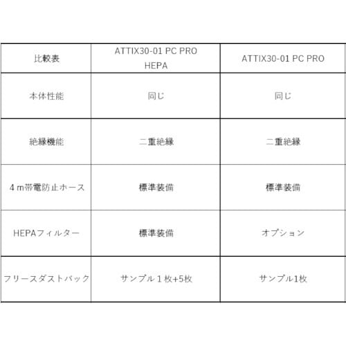 ・HEPAフィルター使用時は液体回収不可、乾式条件のみ